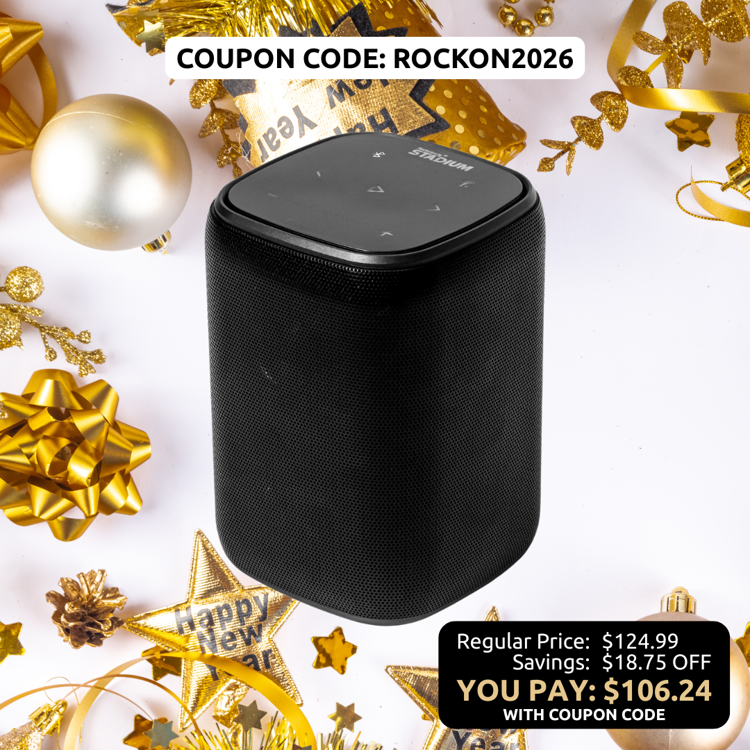 With easy Bluetooth connection you can easily connect your phone or other devices then push one button to enable Stadium Mode to connect unlimited Rocksteady speakers and subwoofers together–no app or wi-fi required. Their incredible 150 foot range makes Rocksteady Stadium the easiest solution for whole home audio.